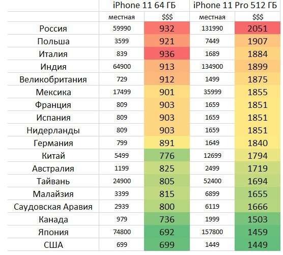 Российским пользователям новые смартфоны Apple действительно обойдутся дороже, чем жителям других стран. Разница iPhone 11 64 ГБ с его базовой ценой в США составляет 233 доллара, а за iPhone 11 Pro 512 ГБ переплачивать придется внушительные 602 доллара. За эти деньги, например, можно взять отличные Android смартфоны OnePlus 7 Pro, Samsung Galaxy S10e или любой актуальный китайский флагман.