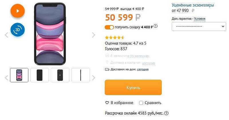 Вот линк на iPhone 11 64 ГБ за 50 599 рублей, здесь можно взять версию на 128 ГБ, а сюда залетайте за iPhone XR за 43 тысячи. Сроки проведения акции DNS не указывает, так что она может закончиться в любой момент.