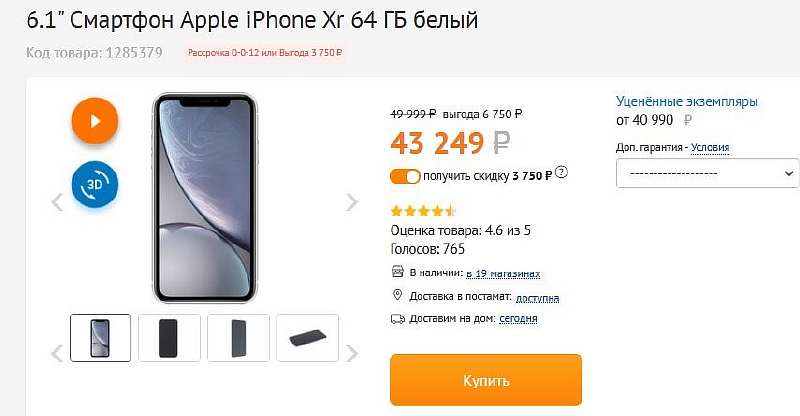 В том же DNS распродают и iPhone XR за 43 249 рублей, но с учетом разницы в 7 тысяч между одинаковыми конфигурациями, мы настоятельно рекомендуем брать iPhone 11. Переплатить стоит хотя бы ради современной камеры с отличным ночным режимом и пары дополнительных лет поддержки производителем.