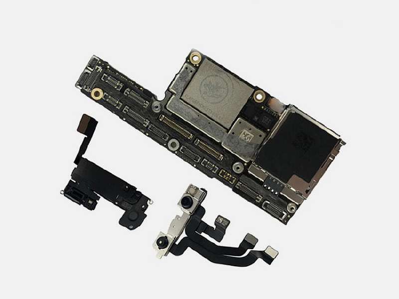 Плата является самым дорогим элементом сборки, причем она продается не одна, а с модулем фронтальной камеры TrueDepth, который отвечает за работу сканера лица Face ID – эти компоненты программно связаны и по сути являются одной деталью.