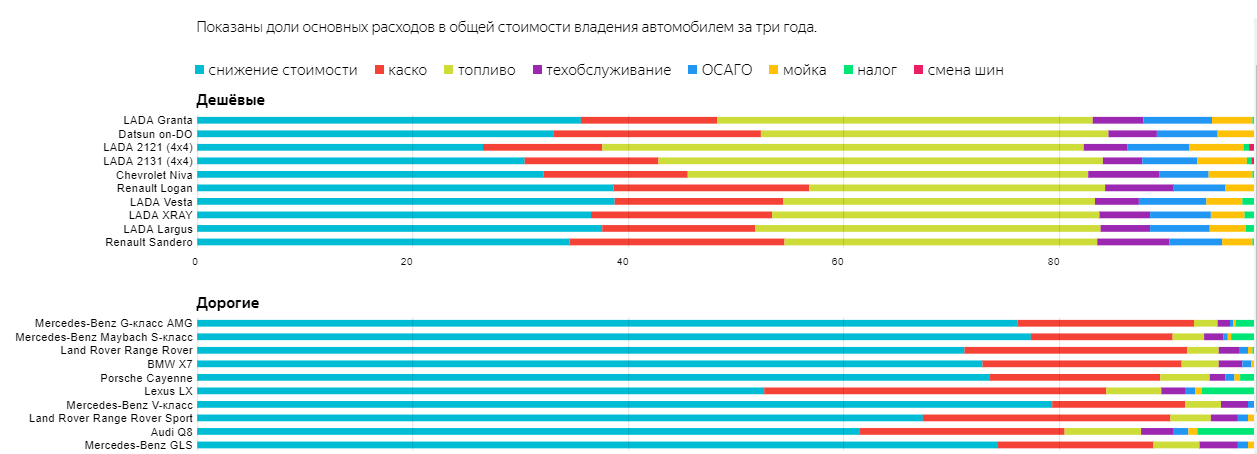 Самая большая статья расходов на все автомобили — потеря в цене. Она зависит от класса машины: чем круче авто — тем больше оно теряет.