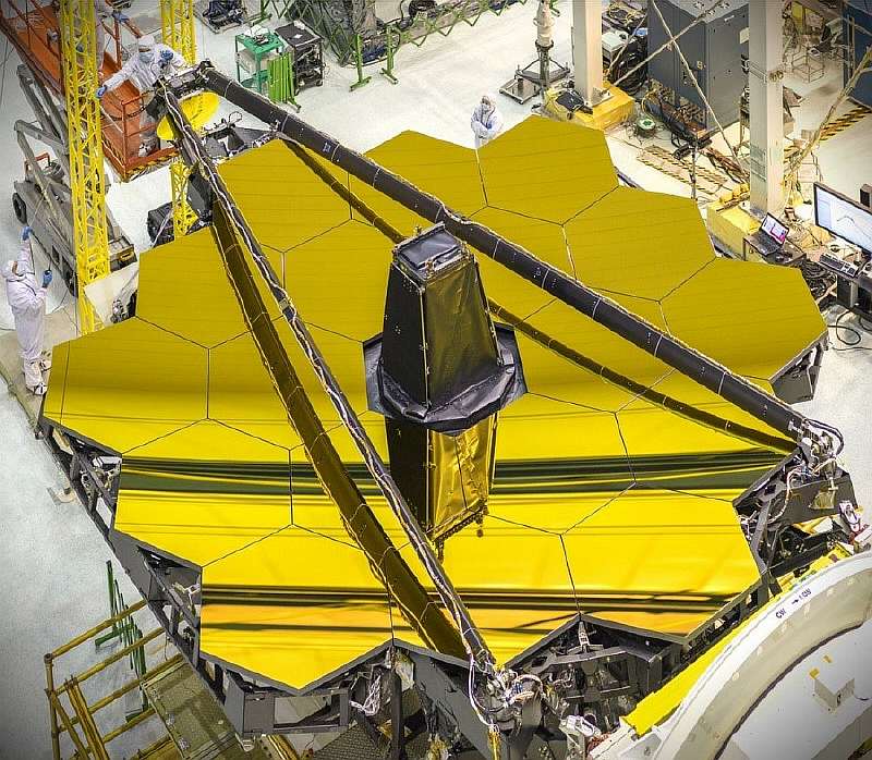 Конструкция нового чуда техники крайне сложная и многосоставная. Диаметр зеркала телескопа составляет колоссальные 6,5 метров (Хаббл — 2,4 метра), при этом его масса почти в два раза меньше, чем у старичка Хаббла весом 11 тонн. Этого гораздо более совершенное устройство, которому после выхода на орбиту предстоит выполнить более 2100 уже запланированных целей, а в дальнейшем служить целям науки несколько десятилетий.
