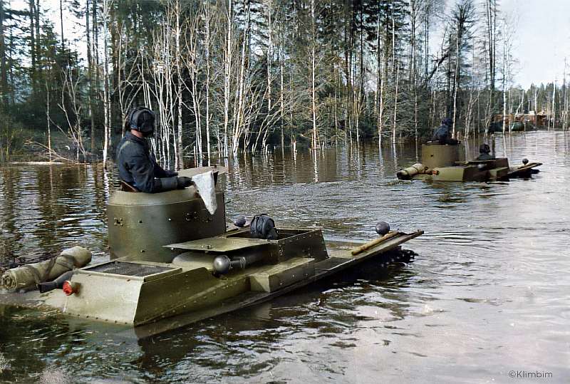 Танки-амфибии форсируют водную преграду, июнь 1941 г.