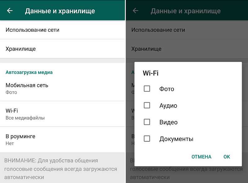 Для начала стоит отключить функцию автоматической загрузки, чтобы самому решать, когда стоит скачать присланный файл, а когда этого лучше не делать. Чтобы отключить автозагрузку, откройте настройки WhatsApp и перейдите во вкладку «Данные и хранилище», конечный пункт называется «Автозагрузка медиа». Автоматическое скачивание распространяется на четыре вида файлов — это фотографии, видеозаписи, аудио и документы. Первые три можно смело оставлять, вредоносный софт не будет работать на их форматах, а вот загрузку документов нужно обязательно отключить.