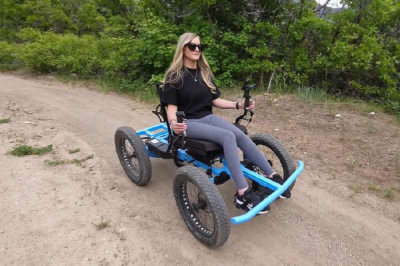 Она имеет алюминиевую раму, съемный бампер и четырехдюймовые внедорожные велосипедные шины.