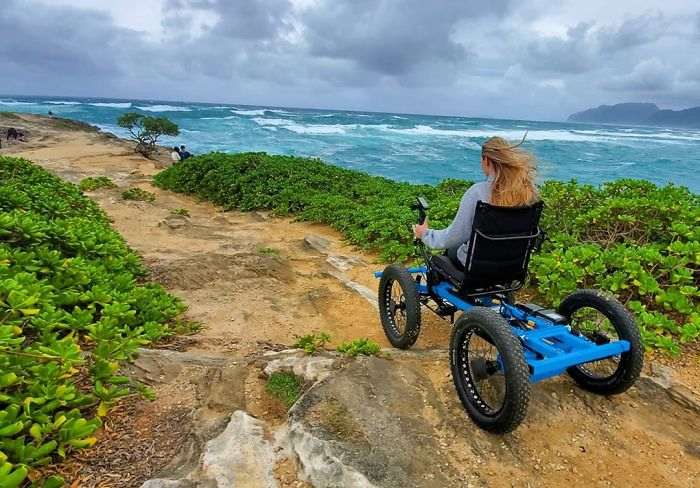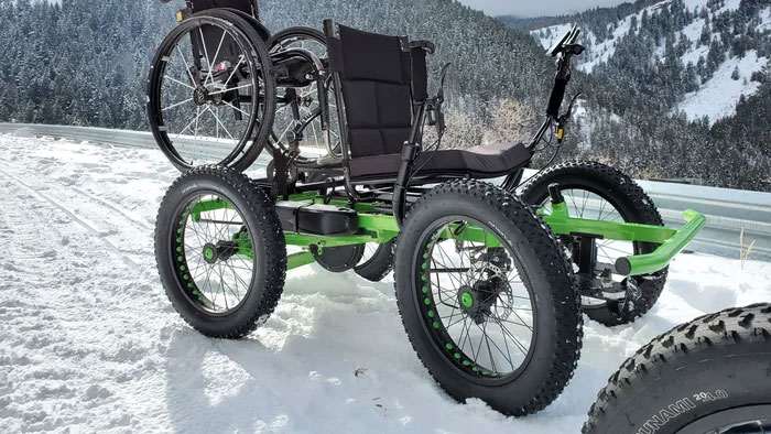 «Не-инвалидная коляска» без проблем преодолевает большинство поверхностей, включая песок и рыхлый снег.