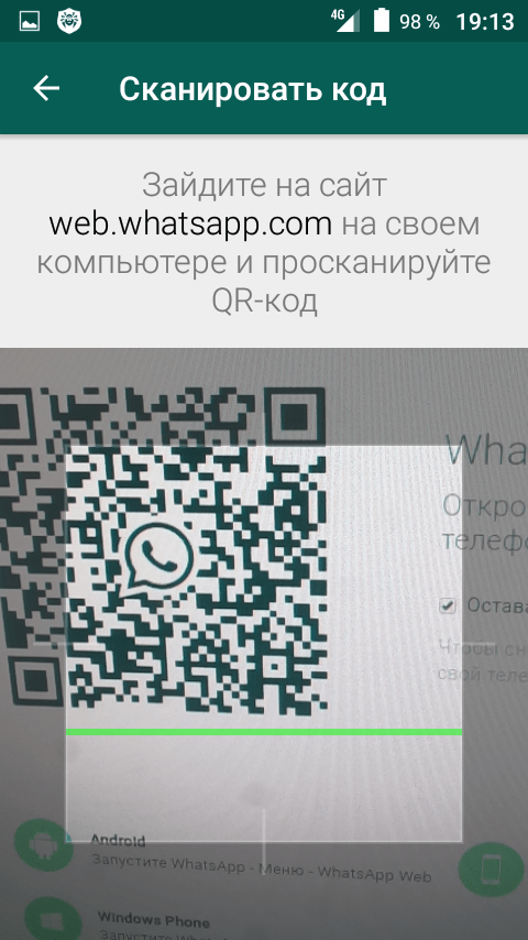 - На экране вашего смартфона вы увидите квадрат. Наведите камеру устройства на экран компьютера и сопоставьте все так, чтобы QR-код на экране ПК попал в светлую область на дисплее смартфона.
