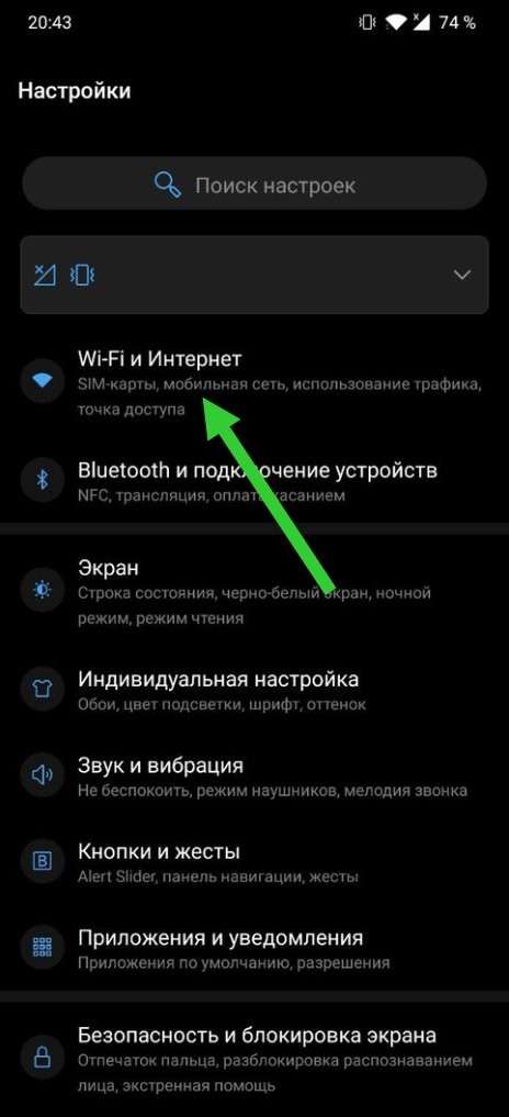 - Откройте настройки своего смартфона, перейдите в раздел Wi-Fi и интернет..