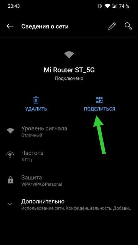 - Просто коснитесь названия своей беспроводной сети, чтобы всплыло окно с QR-кодом.