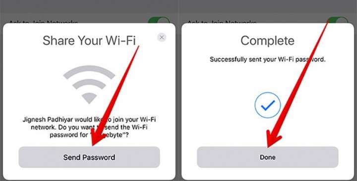 - Осталось дождаться, когда на устройстве хозяина появится всплывающее окно, предлагающее поделиться паролем.