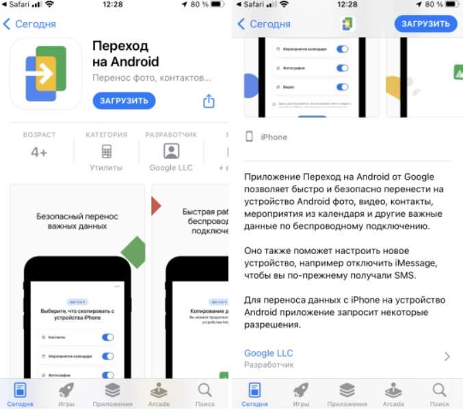 Приложение назвали недвусмысленно «Переход на Android». Однако, найти его в App Store, просто введя название, не получится, поскольку оно скрыто. Установить софт можно только по прямой ссылке. Причины такой секретности неизвестны, Google еще не давала официальных комментариев, но наверняка Apple просто не хочет увеличивать отток пользователей на Android.