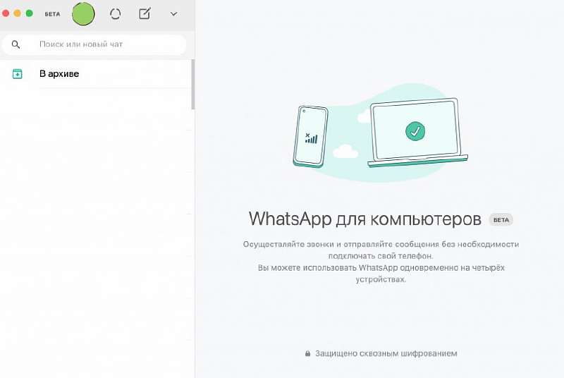Далее останется только отвязать учетную запись от веб-версии на ПК и повторно в нее зайти. Внешний вид приложения изменится, в углу появится надпись Beta и WhatsApp можно будет запускать на четырех устройствах одновременно без привязки к смартфону.