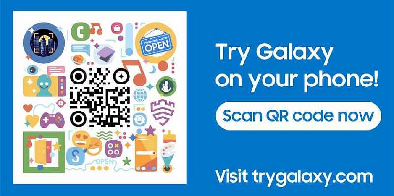 Чтобы запустить симуляцию One UI на своем iPhone, перейдите на сайт trygalaxy.com, откройте приложение «Камера» на вашем iPhone и отсканируйте QR-код, который появится на сайте. Также это можно сделать напрямую с изображения ниже.