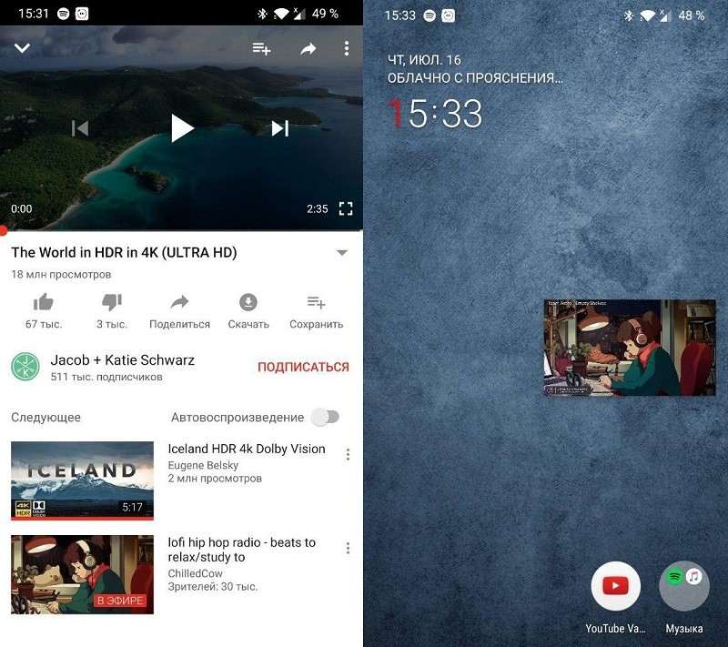- фоновое воспроизведение (можно слушать подкасты или интервью с выключенным экраном, как аудиодорожку).