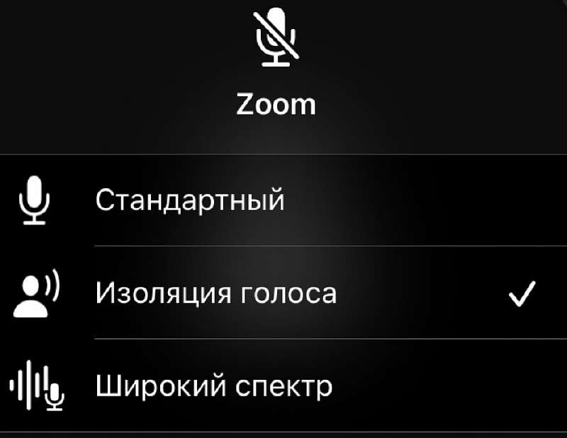 Нюанс состоит в том, что функция расположена не в «Настройках». Она появляется непосредственно во время звонка. Нужно совершить вызов в каком-то приложении, открыть шторку («Центр управления»), тапнуть по иконке микрофона и выбрать режим «Изоляция голоса».