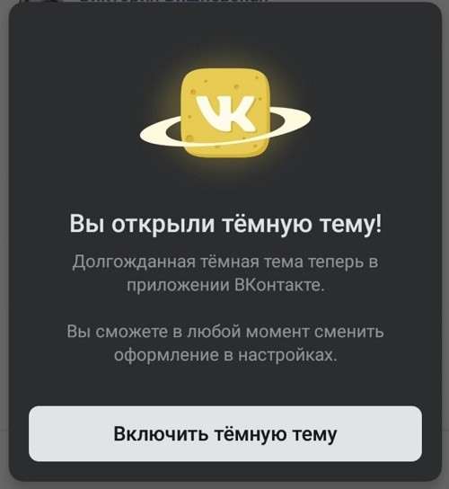 Делается это один раз, в дальнейшем ползунок переключения между светлой темой будет доступен в настройках. Вышесказанное актуально для приложения «Вконтакте» последней версии 5.32.