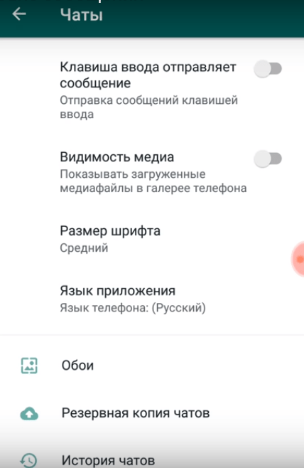 - Зайдите в настройки приложения и выберите пункт «Чаты».