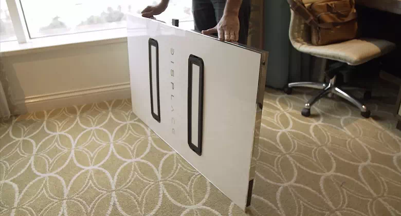 Displace TV рекламируется как полностью беспроводное устройство без каких-либо портов или кабелей, торчащих сзади. Если вам интересно, как что-то подключается к этому телевизору, ответ — базовая станция, который посылает сигнал на экран. Ее дизайн еще не доведен до совершенства, поэтому Displace не показал центральный блок, но говорят, что он будет размером с компьютер, получит процессор AMD и графику Nvidia.