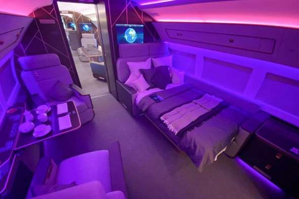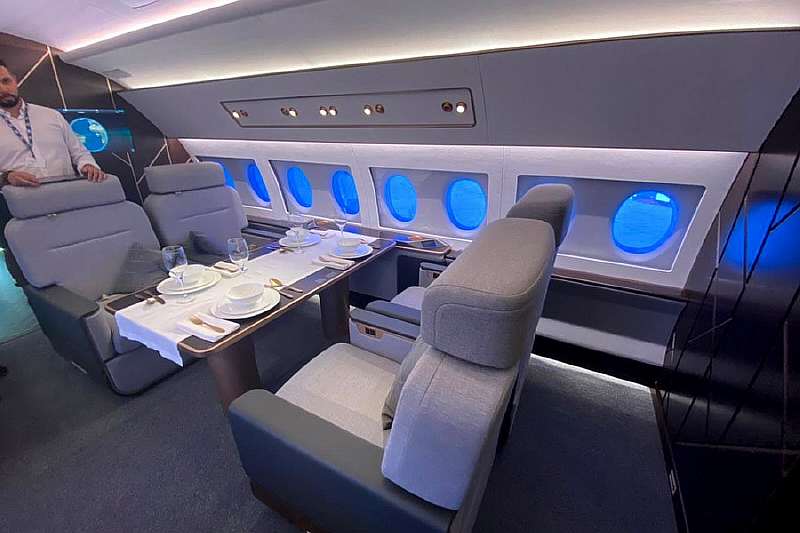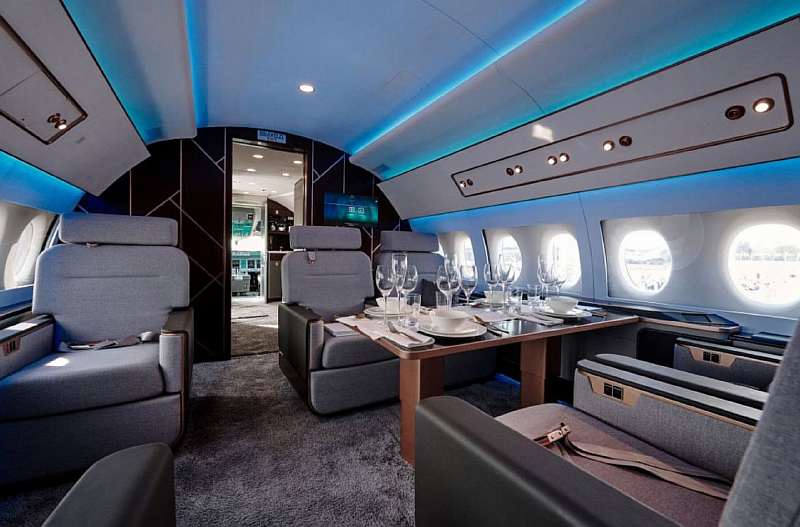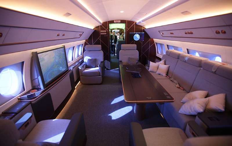 Бизнес-джет, прозванный «летающим лимузином», внутри разделен на 2 части: