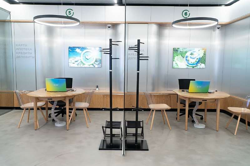 Одно из таких отделений «Сбер» уже продемонстрировал и, признаться честно, выглядит весьма удобно и даже уютно. В большом и просторном помещении все делится на зоны, где любой клиент может скрасить время ожидания.
