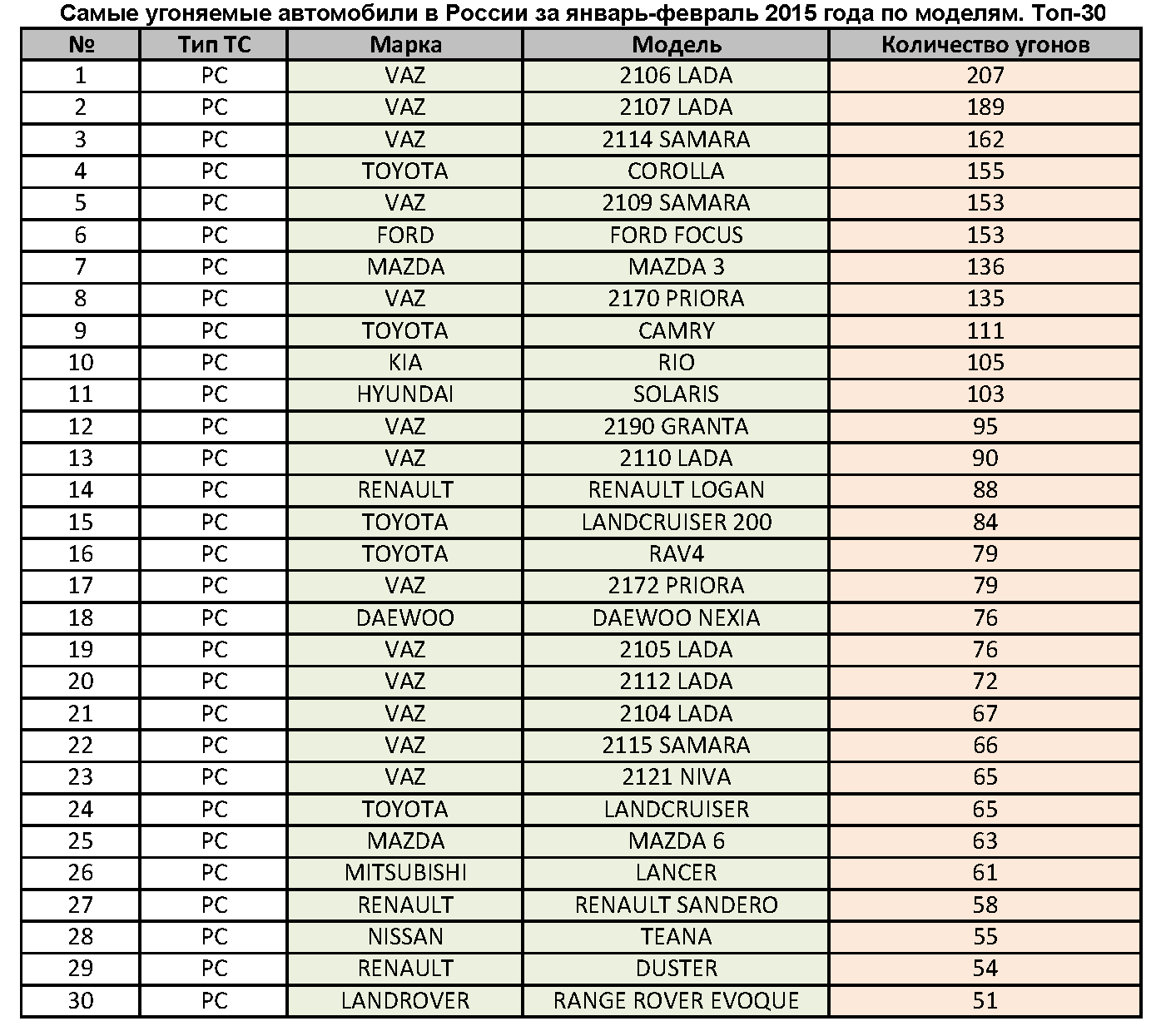 Для сравнения приводим рейтинг самых угоняемых машин почти 7-летней давности: