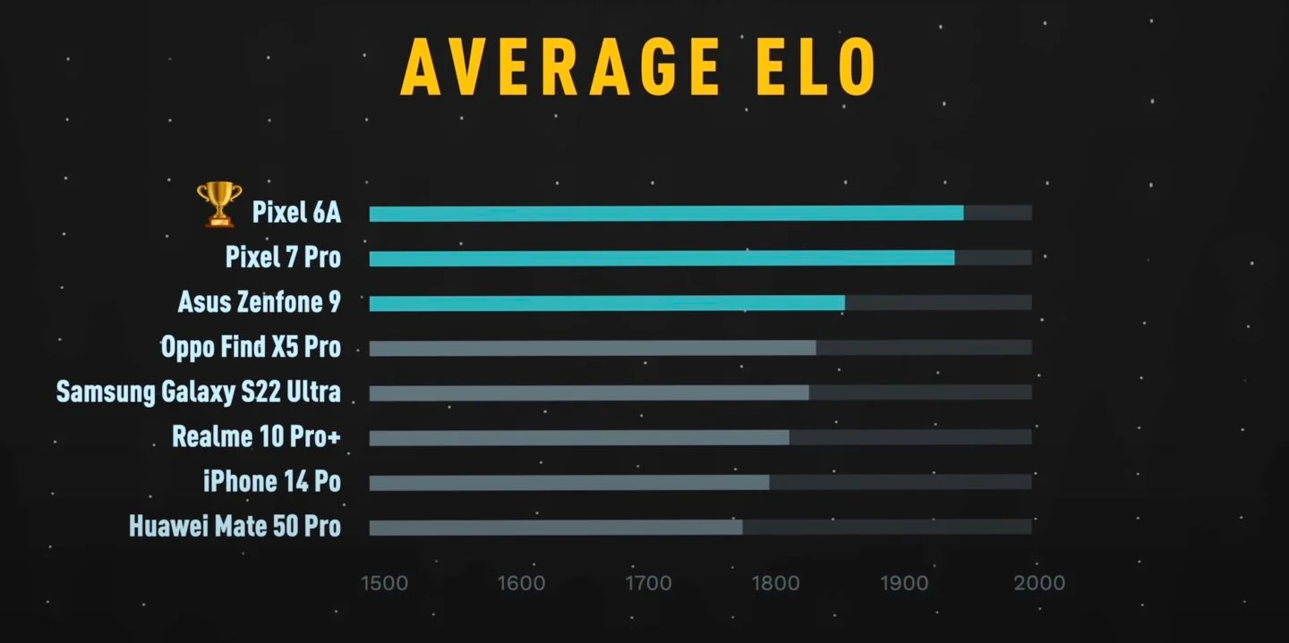 Результаты слепого сравнения получились крайне интересными. Третье место занял ASUS Zenfone 9, второе — Google Pixel 7 Pro, а лучшим камерофоном признали «бюджетный» Google Pixel 6A! Дорогущий Samsung Galaxy S22 Ultra занял пятое место, а iPhone 14 Pro – только седьмое.