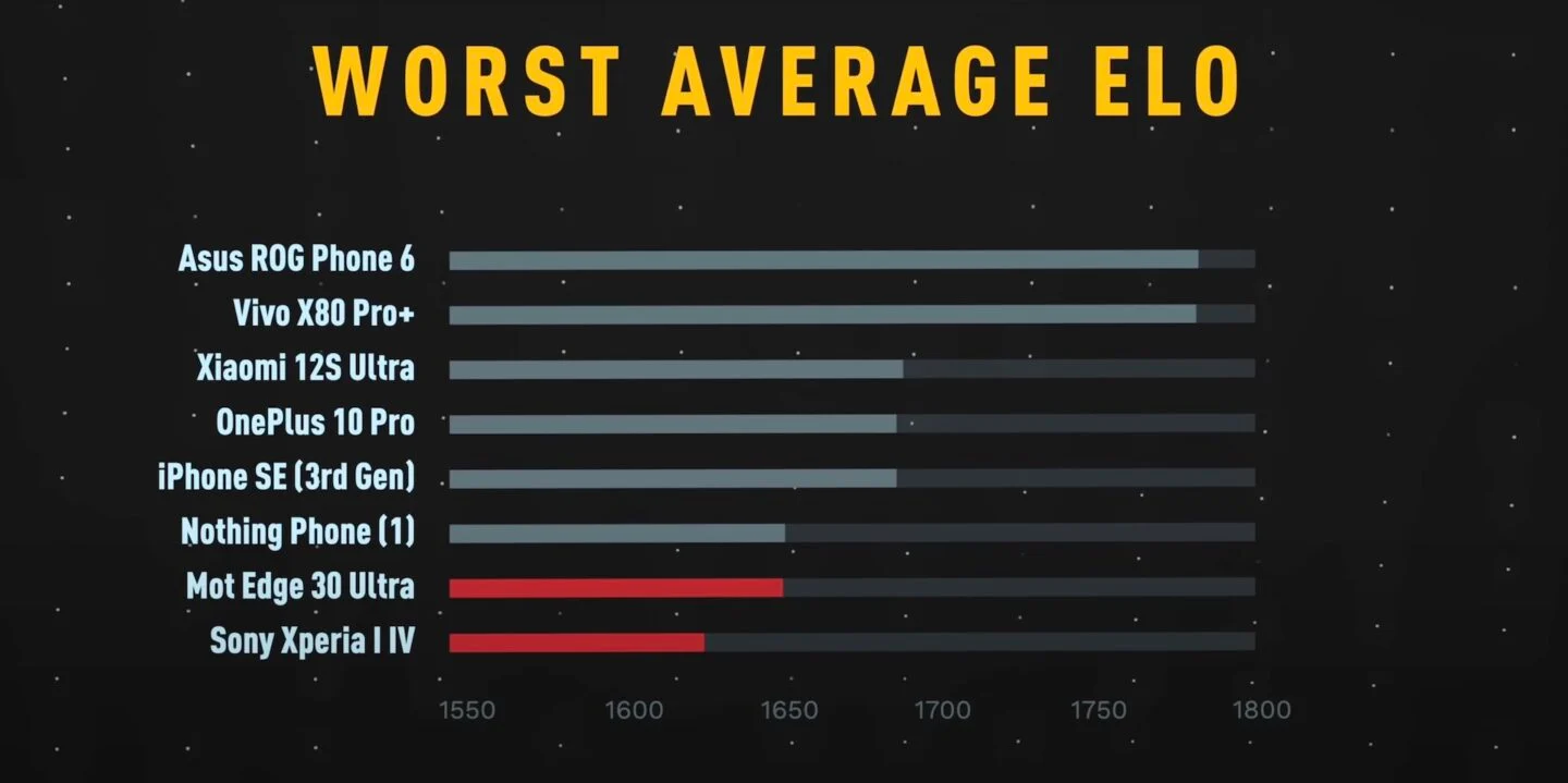 На последних местах оказались Nothing Phone(1), Moto Edge 30 Ultra и Sony Xperia I IV.