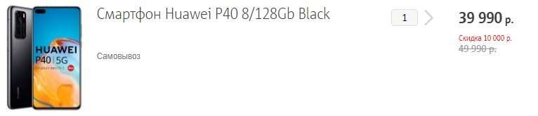 Чтобы получить скидку в размере 10 тысяч рублей необходимо добавить девайс в корзину и при оформлении заказе указать промокод HOME42. Итоговая цена смартфона снизится до 39 990 рублей. Это крайне выгодное предложение за Huawei P40 с официальной гарантией и быстрой доставкой по России, поскольку даже в серых магазинах он стоит дороже.