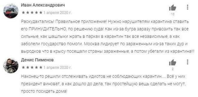 Неудивительно, что «Социальный мониторинг» россиянам сразу не полюбился, на старте рейтинг приложения в Google Play опустили до одной звезды. Вслед за этим произошел наплыв хвалебных отзывов, и все как один — с недавно созданных аккаунтов. Правда, надолго в открытом доступе приложение все равно не задержалось, сейчас скачать его уже нельзя.