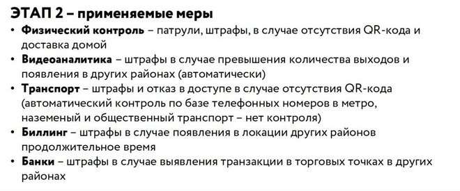 Если вы думаете, что полицейских на всех не хватит, то сильно ошибаетесь. Издание «Коммерсантъ» поделилось выдержками из служебной презентации мэрии, подлинность которой подтвердили в правительстве Москвы, но с оговоркой, что вариант мер не финальный. Интересен в презентации второй слайд с мерами по слежке за гражданами.