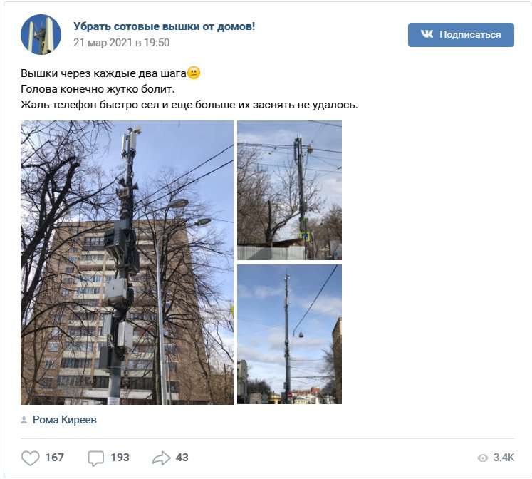 «99% исследований в данной области есть продукт лобби операторов, которые содержат целые институты, убеждающие нас в безопасности [5G]. Такие исследования проведены на частные деньги, а бывали случаи, когда операторы не уследили за своими лабораториями, те пришли к отрицательным заключениям и даже успели выложить их, но потом все отозвали и уничтожили», – рассказал в интервью «Кавказ.Реалии» администратор крупного тематического паблика «Убрать сотовые вышки от домов!»