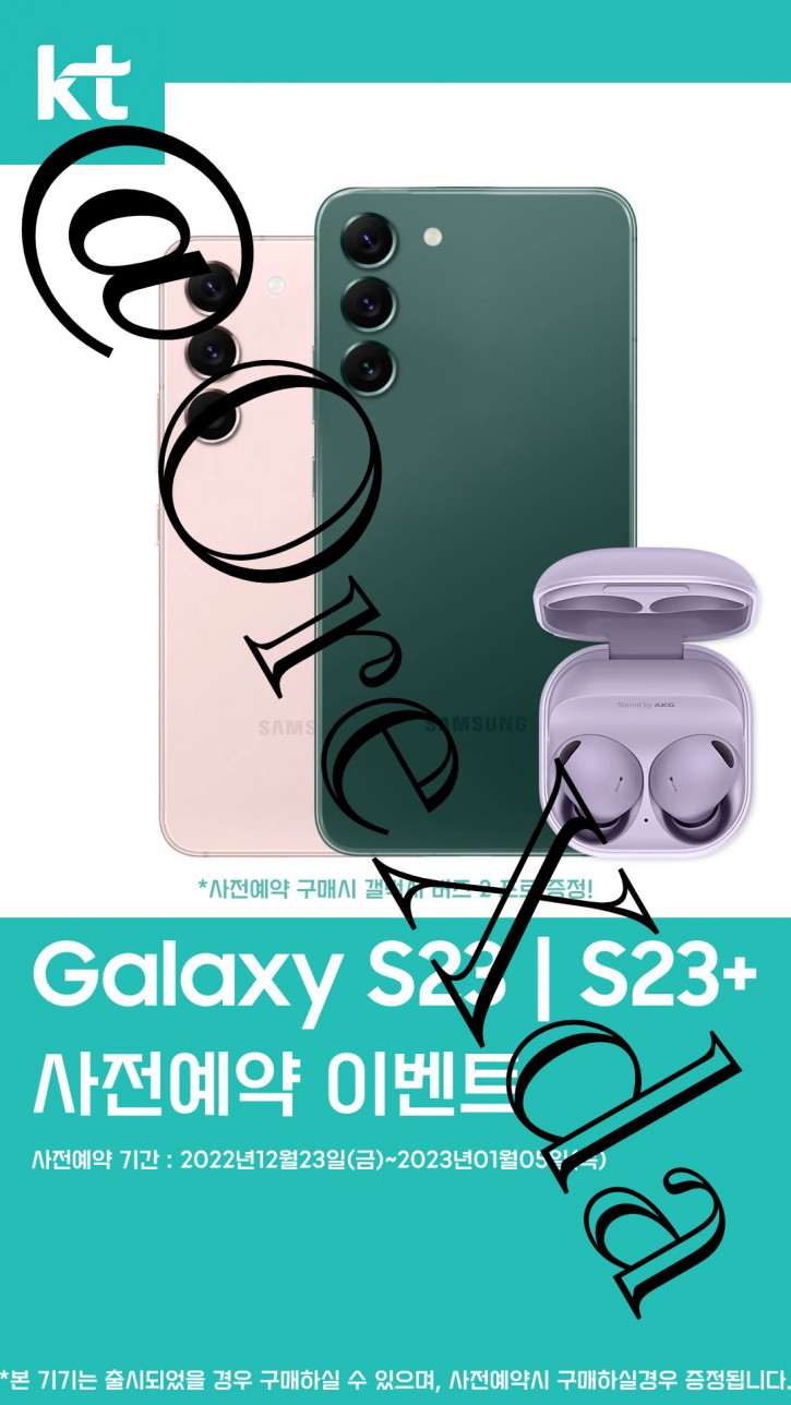 Galaxy S23 засветился на рекламном постере корейского сотового оператора KT Corporation, который будет собирать предзаказы смартфона. Аппарат изображен в двух цветах – розовом и зеленом. Он имеет минималистичный дизайн с тройной основной камерой, объективы которой расположены прямо на спинке, без какого-либо дополнительного блока. Это подтверждает все ранние утечки, которые публиковали другие инсайдеры.