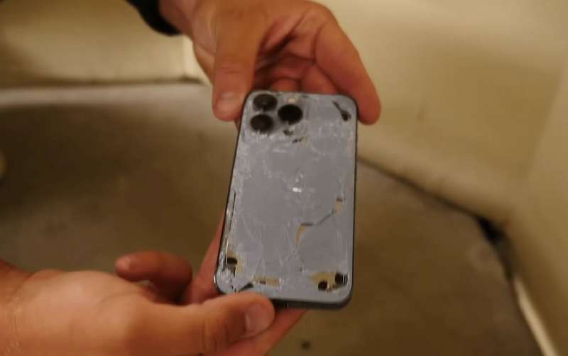 Эксперимент получился не до конца – девайсы так и не долетели до земли, поскольку потоки воздуха сносили их к перилам. После первого падения на высоту нескольких этажей у iPhone 13 Pro пострадало только стекло на спинке, а дисплей остался целым. Блогеры бросили его еще три раза, задняя крышка разбилась вдребезги, а экран получил лишь небольшие трещины в углу, которые не повлияли на работоспособность сенсора. В конце аппарат продолжил функционировать.