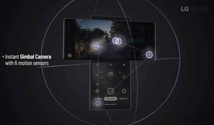 На экране LG Wing нет фронталки, 32-мегапиксельный селфи-модуль спрятан в перископический выдвижной механизм. Что касается основной камеры, она состоит из трех сенсоров на 64+12+13 МП, причем оба вспомогательных объектива – широкоугольные. Один из них оснащен продвинутой системой стабилизации на базе механического подвеса, который позволяет менять угол обзора, то есть прямо во время съемки камеру можно будет повернуть в нужном направлении с помощью виртуального джойстика.