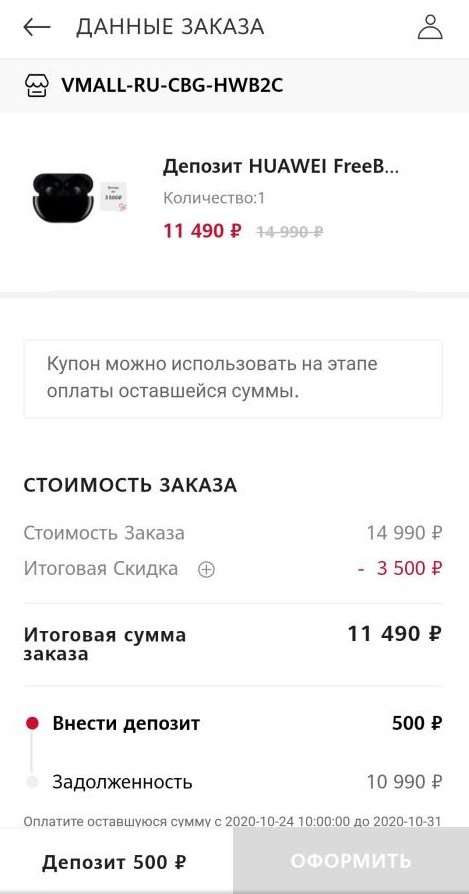 Стоимость FreeBuds Pro на этапе предзаказа в России составляет 12 990 рублей, он продлится до 24 октября, после чего цена увеличится на 2 тысячи. Однако есть способ сэкономить еще сильнее: при оформлении предзаказа в официальном интернет-магазине Huawei можно внести предоплату 500 рублей и получить еще 1500 рублей скидки, что снизит итоговый прайс наушников до 11 490 рублей. Оставшуюся часть суммы нужно оплатить по завершению периода предзаказа, то есть 24 октября.