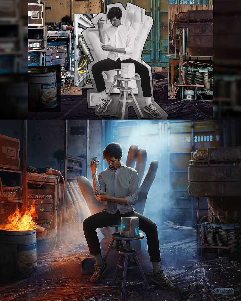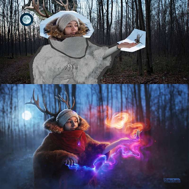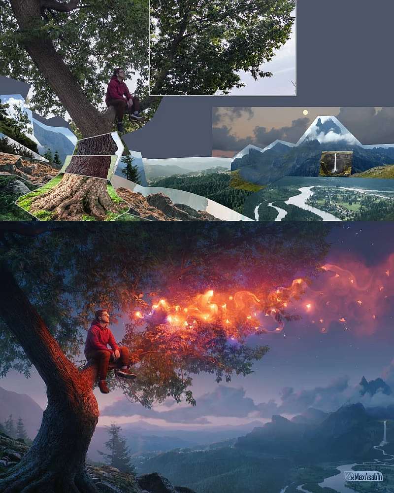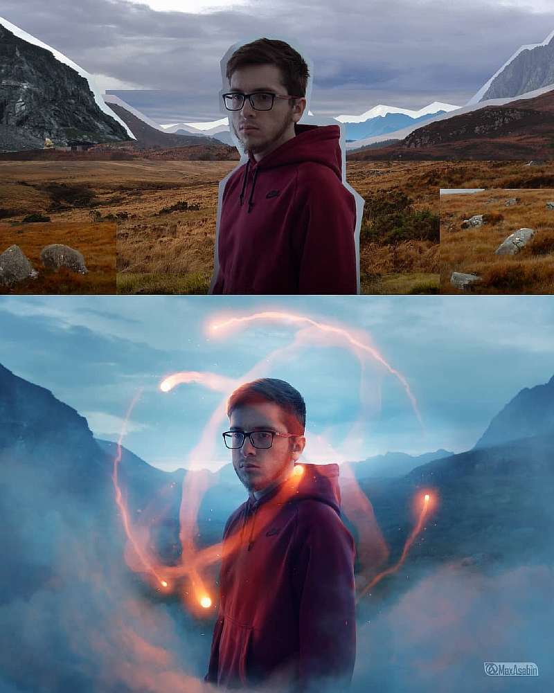 Асабину легко удается совместить, казалось бы, несовместимые снимки, и получить принципиально новое изображение. Даже с трудом верится, что парень — самоучка, и азы Photoshop постигал самостоятельно. Сейчас работе с графическими редакторами Макс учит и других. Он регулярно выкладывает видео о создании подобных изображений, в которых демонстрирует весь процесс от начала и до конца.