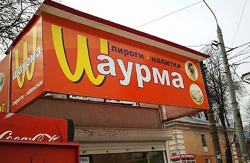 Обладая всеми правами на интеллектуальную собственность корпорация активно наказывает подражателей. Например, в марте пермское управление ФАС по запросу «McDonald’s» возбудила несколько дел против владельцев кафе «Wаурма». Лого забегаловки подозрительно напоминало перевернутый логотип Мака.