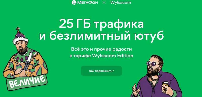 Новый тариф получил название «Интернет Wylsacom Edition». Подключивший его абонент получит 500 минут звонков на любые номера в пределах домашнего региона и безлимитные звонки на «МегаФон» по стране, 25 ГБ интернета, а также безлимитный трафик в приложении YouTube и социальных сетях «ВКонтакте», «Одноклассники», Facebook, Instagram, Twitter, Periscope. Все это за 550 рублей в месяц (Москва).