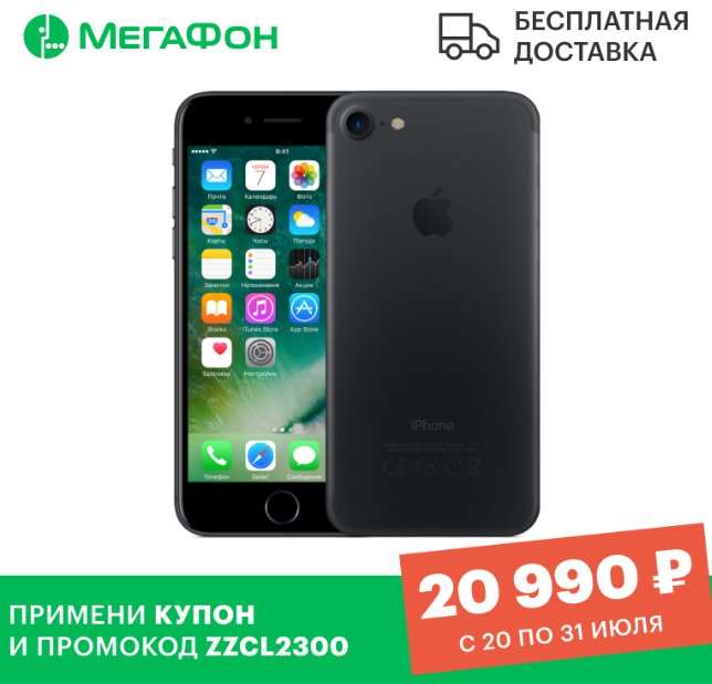 С 20 по 31 июля интернет-магазин Мегафона на платформе Tmall распродает по акции iPhone 7. Бессмертный флагман Apple в правильной версии 128 ГБ можно купить за рекордно низкие 20 990 рублей.