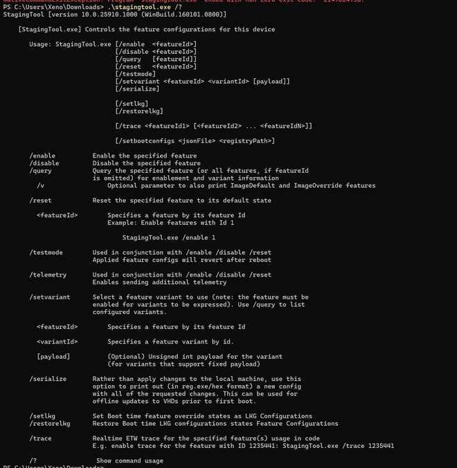 На практике утилита StagingTool состоит из текстового интерфейса и командной строки. Зная идентификаторы новых функций, многие из которых публикуются и обновляются на GitHub, пользовать может активировать их вручную. Раньше для этого использовались неофициальные инструменты Mach2 и ViveTool, но теперь все можно сделать официальным способом.
