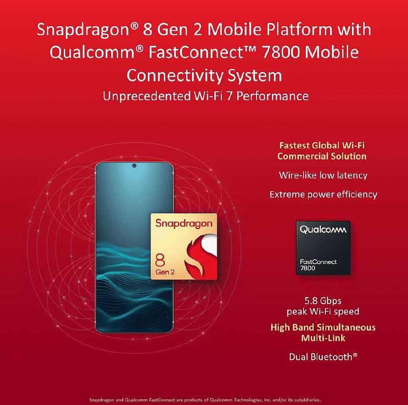 Qualcomm сообщает, что платформа стала на 30% мощнее предшественника, а прирост энергоэффективности составляет 40%. Поддерживается самый передовой набор беспроводных интерфейсов: Wi-Fi 7, Bluetooth 5.3 и новый 5G-модем Snapdragon X70, который способен работать с двумя SIM-картами 5G одновременно