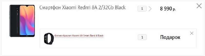 Ссылка на Redmi 8A + Mi Band 4 за 8 990 рублей в МТС