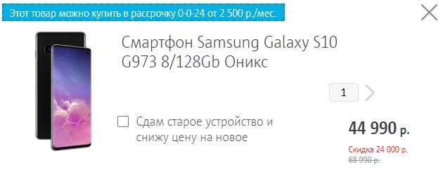 Сошлись сразу три фактора – скидка в магазине, промокод и трейд-ин, в общем все как мы любим. При оформлении покупки на сайте МТС используйте промокод FEB24, который срежет цену до 44 990. Еще до 10 тысяч можно выиграть по трейд-ину, если лично прийти за покупкой в салон и сдать красным свой старый смартфон.