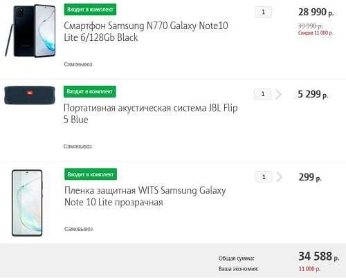 Оба смартфона участвуют в акции на покупку дополнительного товара. Если к Galaxy Note 10 Lite взять что-то на сумму 5500 рублей, его цена упадет на 11 тысяч, а S10 Lite дешевеет на 12.5. тысяч, при покупке на 6300 рублей.