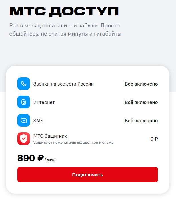 Неделю назад мы рассказывали о новом тарифе от МТС под названием «Доступ». Условия у него шикарные – 40 ГБ интернет-трафика с 15 бесплатными дополнительными пакетами по 50 ГБ, 1000 минут на звонки внутри сети с неограниченным количеством продлений по 200 минут, а также 250 смсок. Всё это за 890 рублей в месяц.