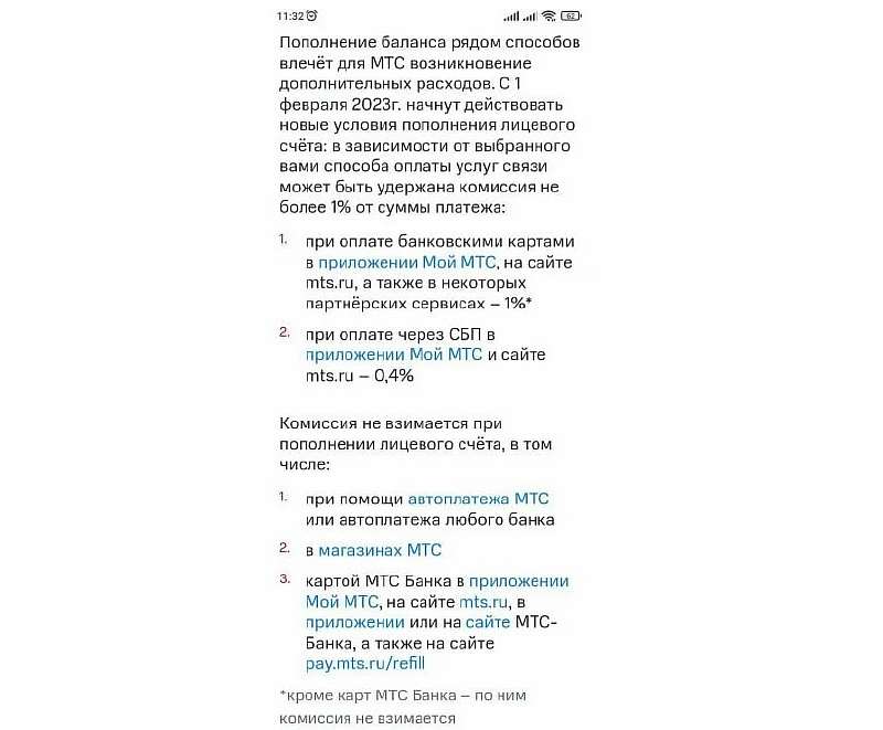 С 1 февраля для абонентов МТС начинают действовать новые правила — мобильный оператор будет брать комиссию за пополнение баланса. Размер комиссии зависит от того, каким способом клиент кладет деньги на счет: