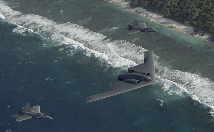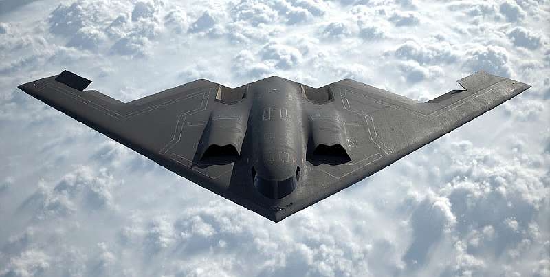 Судя по форме — это американский стратегический бомбардировщик Northrop B-2 Spirit, предназначенный для прорыва противовоздушной обороны и доставки обычного или ядерного оружия на территорию врага. Это первый тяжёлый стелс-самолёт со схемой «летающее крыло», выпускающийся серийно. В период с 1983 по 1999 год был произведен всего 21 экземпляр B-2 Spirit, и по сей день он считается самым дорогим самолетом за всю историю авиации. Стоимость одной машины на 1997-год достигала 2,1 млрд долларов.