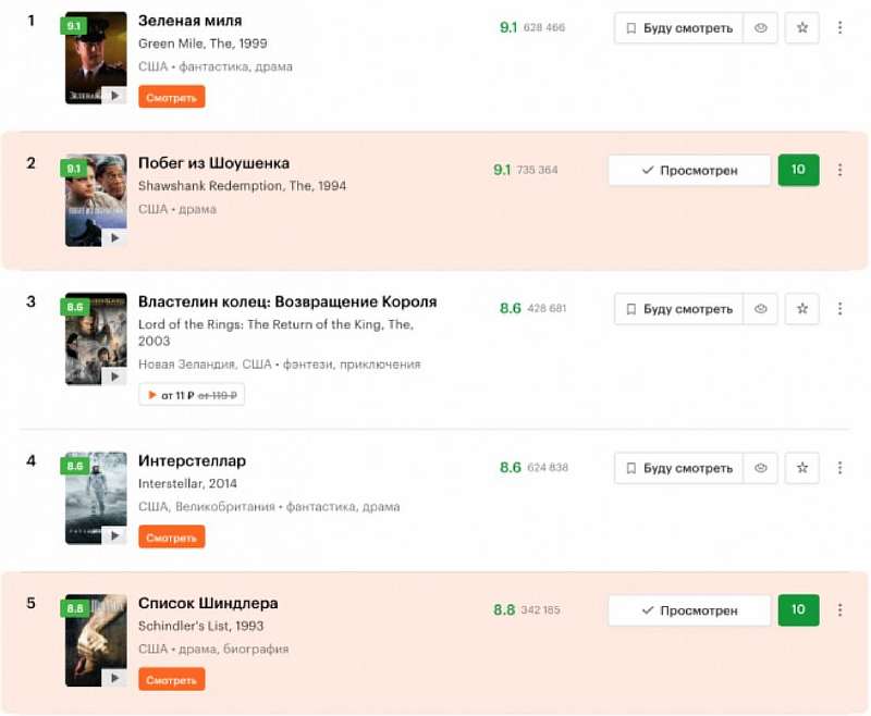 Что примечательно, культовый фильм «Побег из Шоушенка» больше не топ-1, он переместился на вторую строчку, уступив другому фильму по роману Стивена Кинга — «Зеленой миле».