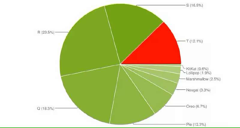 По последним данным, под управлением Android 13 в сейчас работает всего 12.1% устройств на рынке. Первое место принадлежит Android 11 (23,5%), второе — Android 10 (18,5%), а третье — Android 12 (16,5%). Последний Android также менее распространен, чем версия 9.0 Pie из 2019 года, доля которой составляет 12,3%