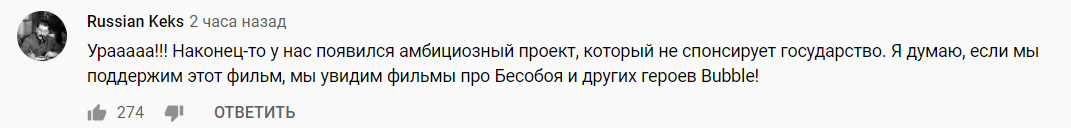 Отклик на Ютубе у трейлера крайне позитивный: на первый вечер после публикации он собрал 17к+ лайков, и около 0.5к дизлайков. Зрители хвалят студию и ее работы: